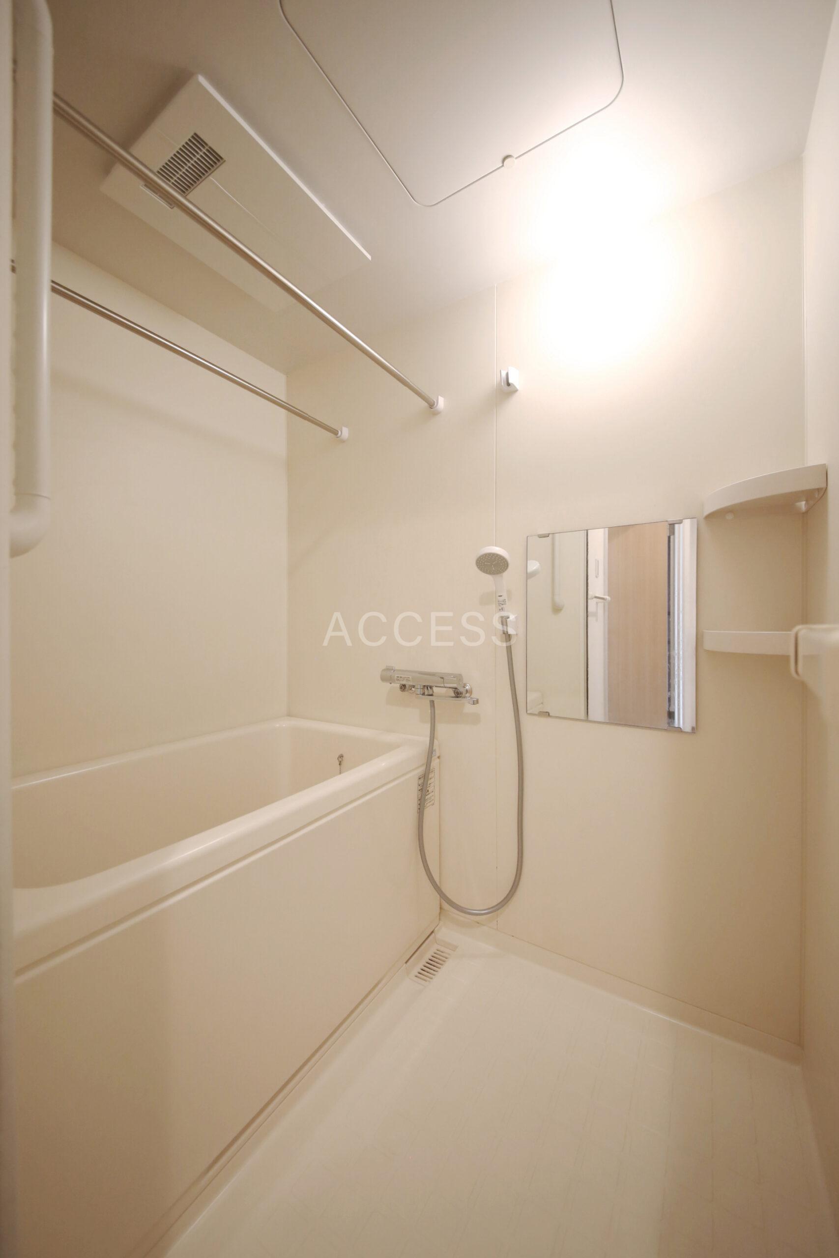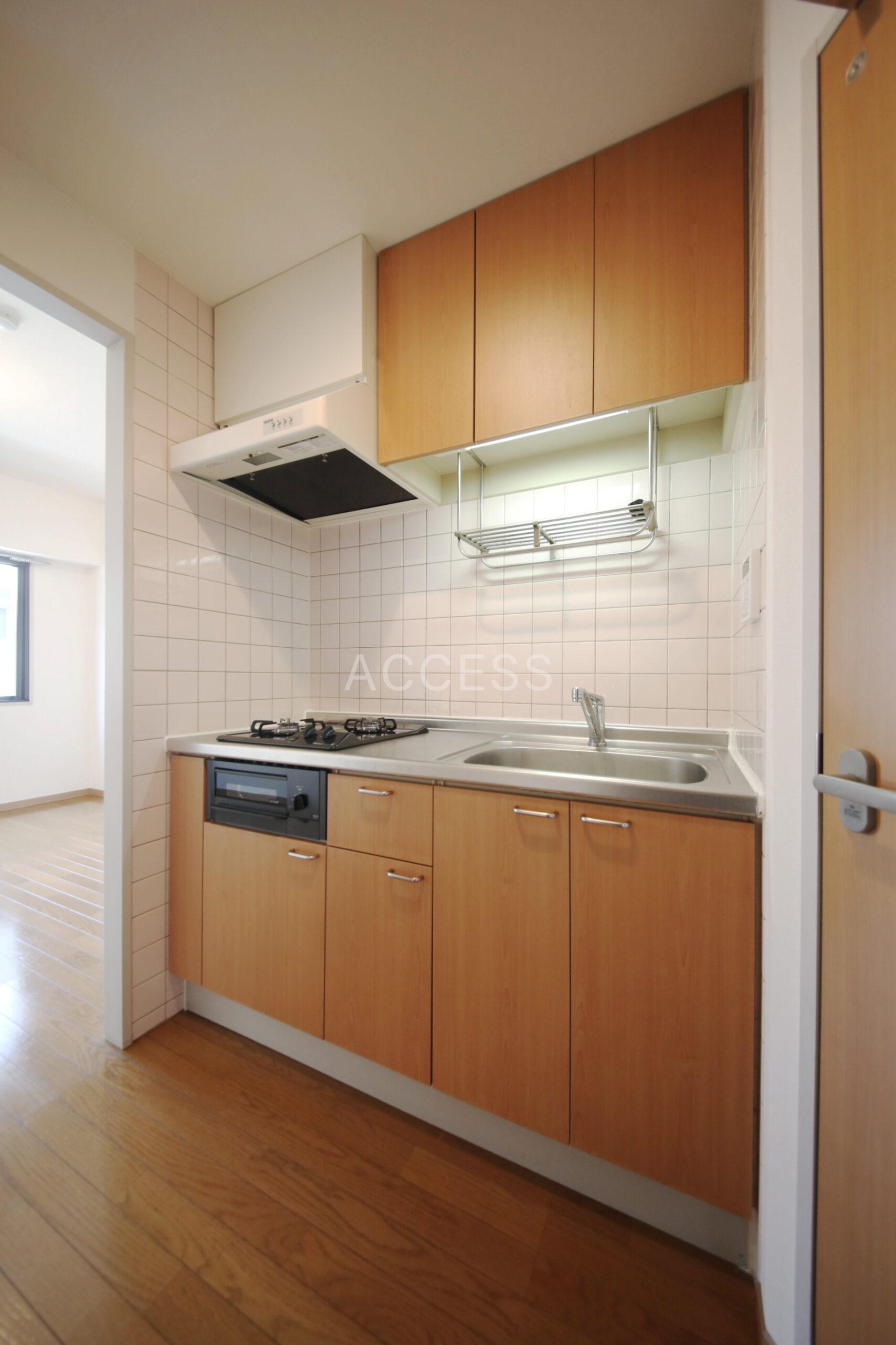 - インターホン(TVモニター付)、オートロック、 、 フローリング、 ベランダ、 クローゼット(1ヵ所)、収納スペース、下駄箱、 バストイレ(別室)、洗濯置き場(室内)、浴室乾燥機、給湯、ウォシュレット、洗面台、独立洗面台、 コンロ設置済(2口)、コンロ種類(都市ガス)、グリル、システムキッチン、 エアコン(1基)、24H換気システム、 BS、CATV(有料)、 光ファイバー 二面採光、角部屋