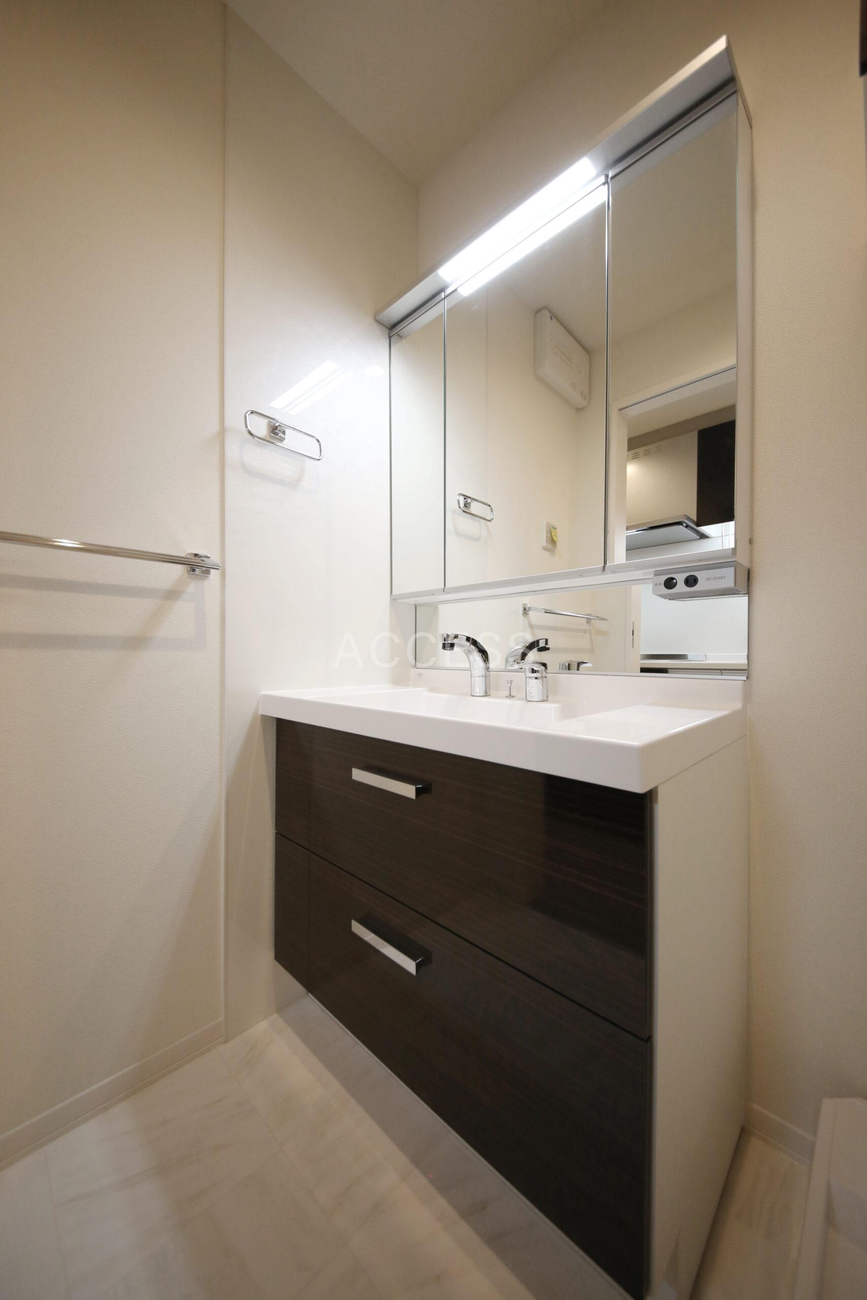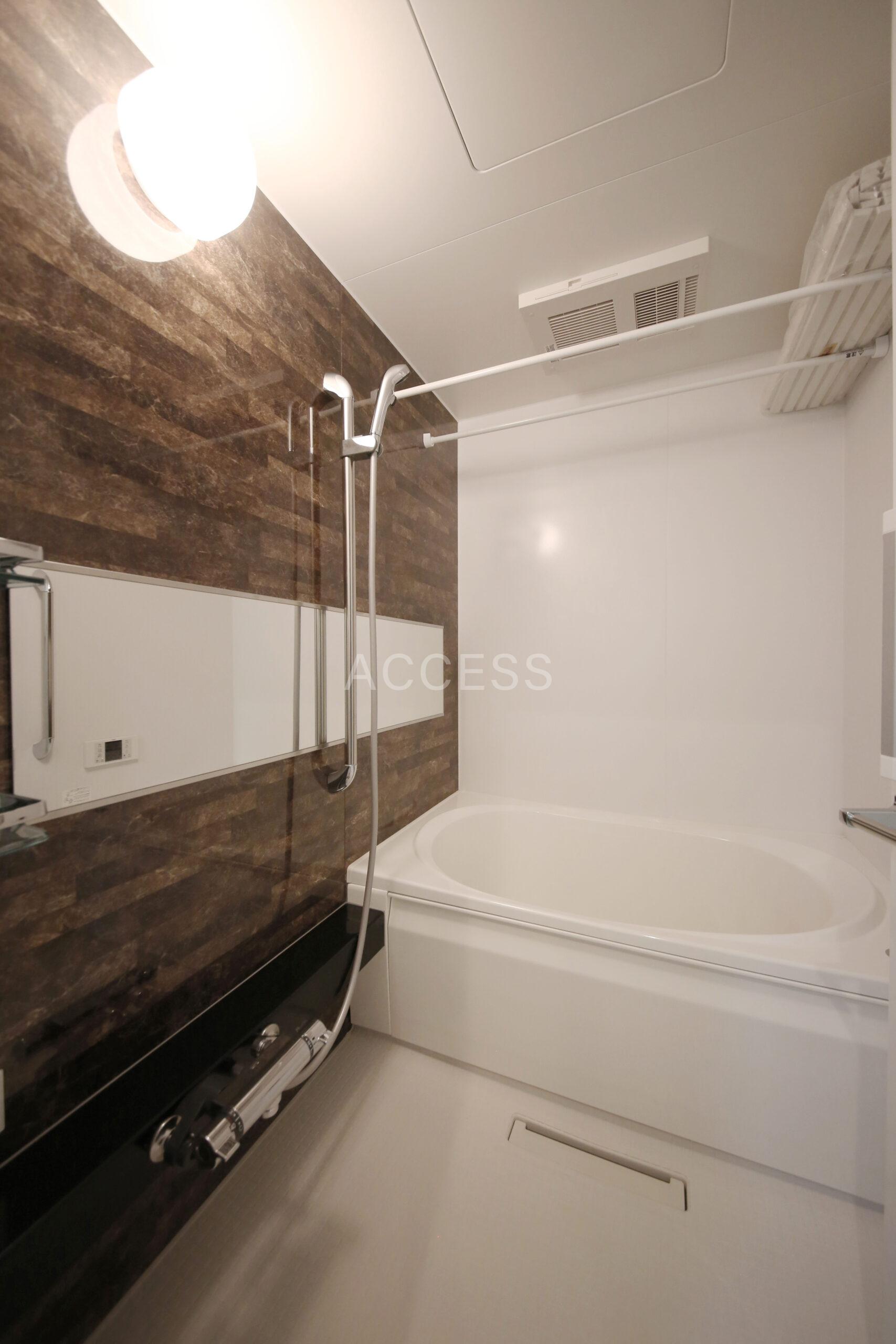 - インターホン(TVモニター付)、ダブルロック、オートロック、 、 フローリング、玄関手すり、全居室フローリング、二重ガラス、ダウンライト、 ベランダ、 ウォークインクローゼット(1ヵ所)、収納スペース、下駄箱、 バストイレ(別室)、洗濯置き場(室内)、追焚、浴室乾燥機、脱衣所、給湯、ウォシュレット、洗面所にドア、洗面台、洗面所独立、シャンプードレッサー、三面鏡付き洗面化粧台、独立洗面台、浴室ワイドミラー、トイレに手摺付き、 コンロ設置済(2口)、コンロ種類(IH)、グリル、システムキッチン、 エアコン(1基)、 BS、CS、CATV(有料)、 光ファイバー、インターネット使用料無料、無線LAN 二面採光