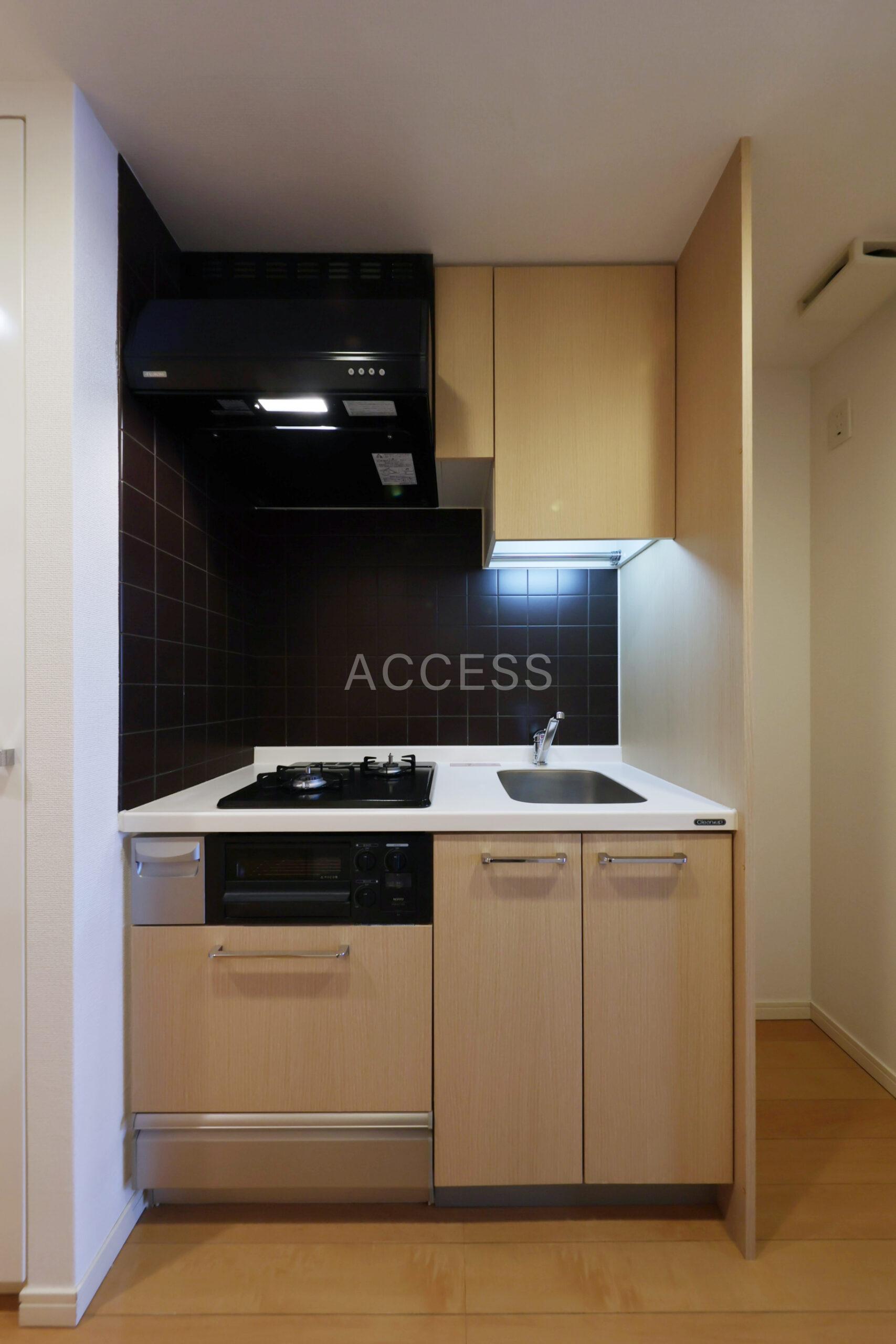 2口ガスコンロ・グリル付キッチン・浴室暖房乾燥機付バスなど暮らしに寄り添う設備が整います!スライドドアの為、居室を広く使えます!