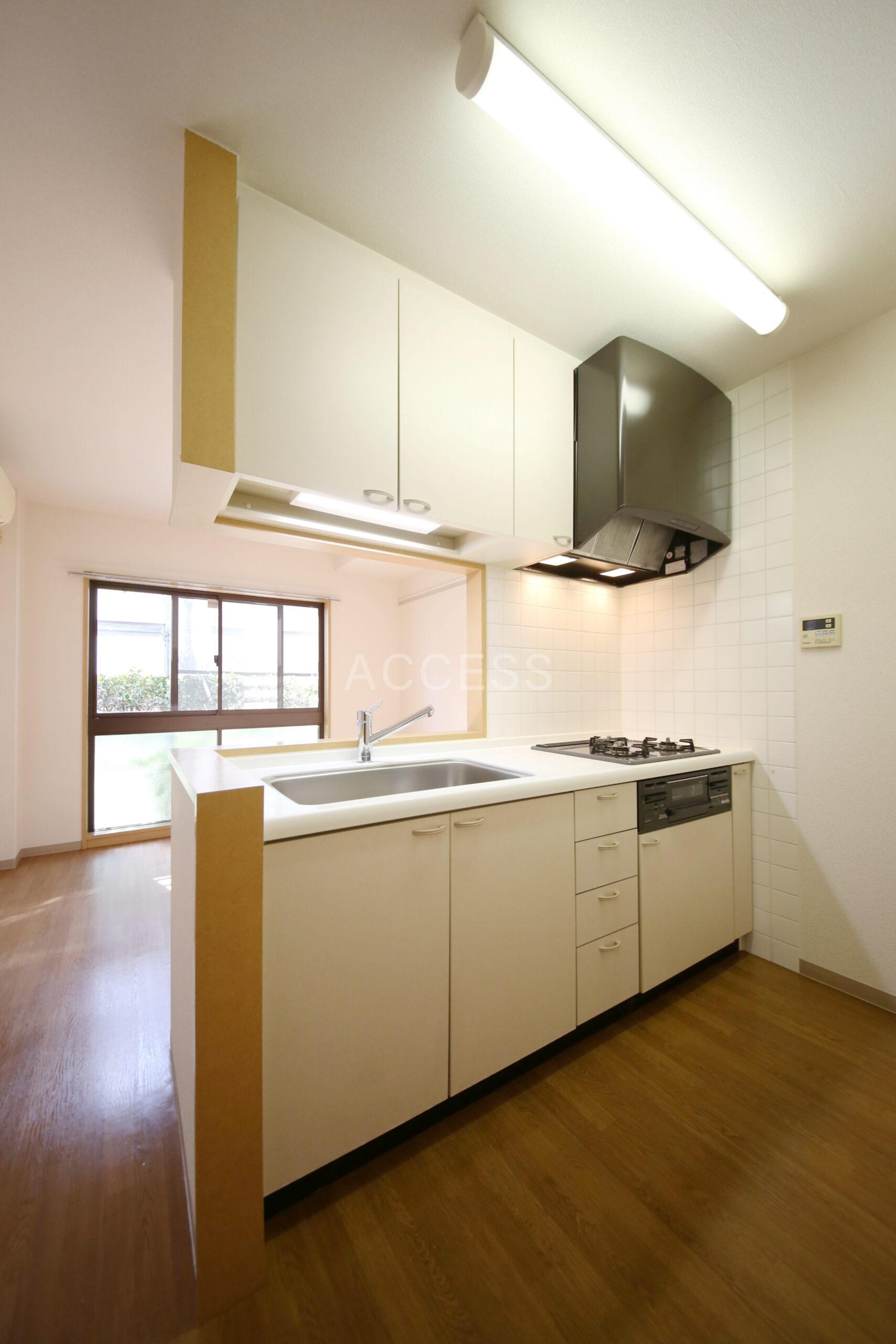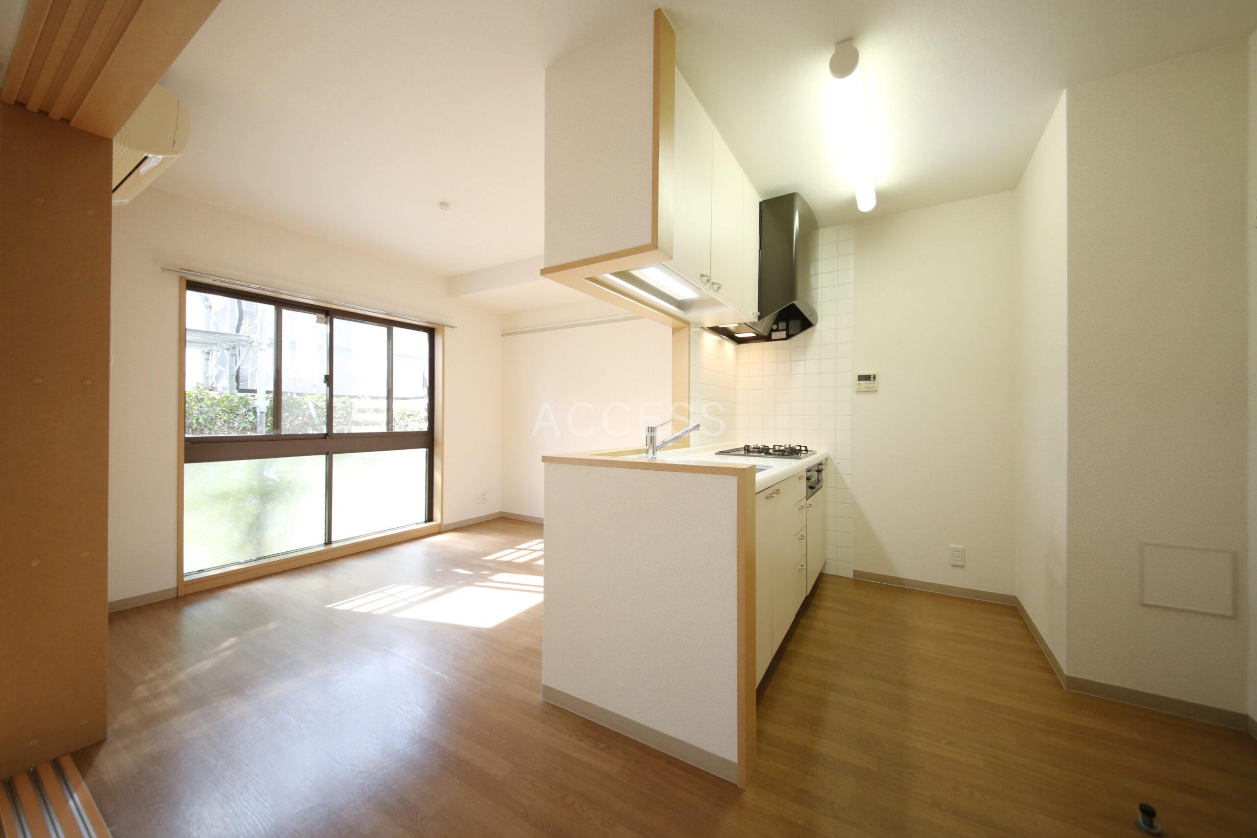 深沢2丁目の閑静な住宅街にあるヴィンテージレジデンス。駒沢公園、呑川緑道が近く緑豊かな住環境。3口ガスコンロ・グリル付きの対面キッチン、独立洗面台、各居室に収納設備など暮らしやすい間取り【平置き駐車場あり(別途契約)】