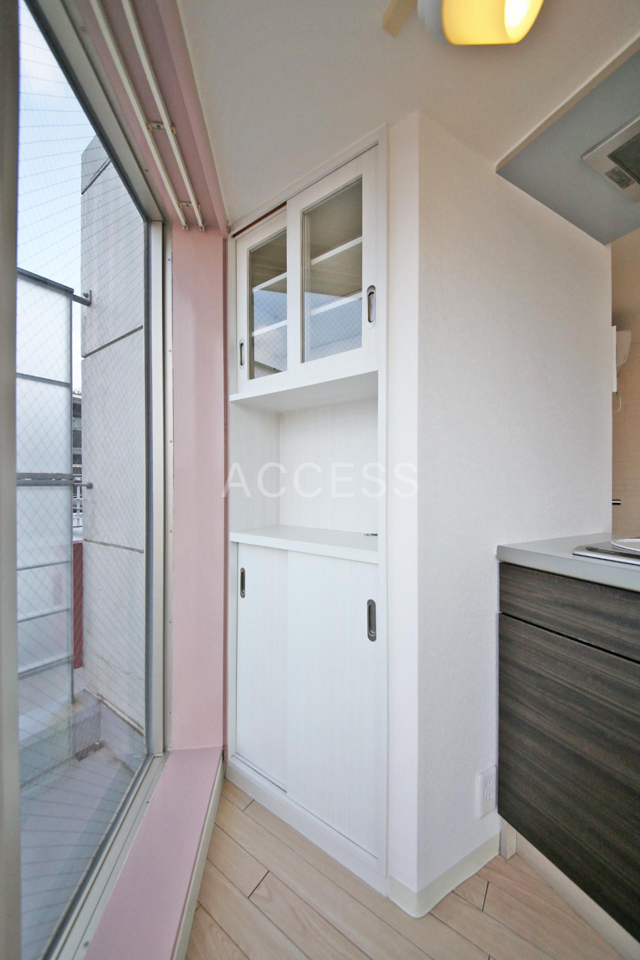 - インターホン(TVモニター付)、オートロック、 、 フローリング、 ルーフバルコニー、 クローゼット(1ヵ所)、下駄箱、 バストイレ(同室)、洗濯置き場(室内)、シャワー、浴室乾燥機、給湯、洗面台、 コンロ設置済(1口)、コンロ種類(IH)、システムキッチン、 エアコン(1基)、24H換気システム、 BS、CS、CATV(有料)、 光ファイバー 二面採光、角部屋、最上階