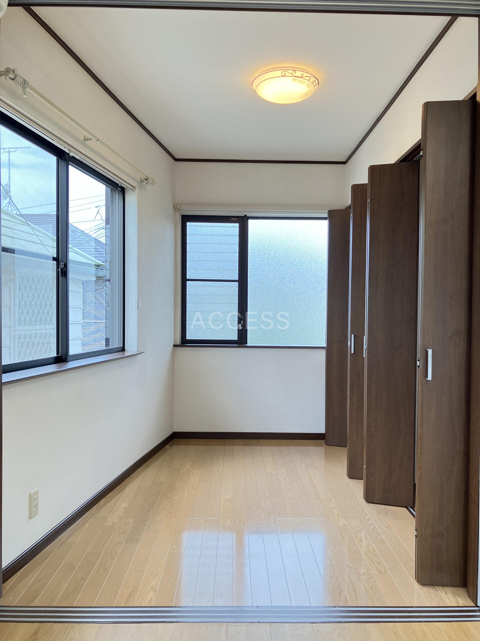窓が多く採光を取り入れやすい間取り2階建2LDK。各階にトイレ・収納ありで暮らしやすい設備が整います。独立性のあるキッチンも魅力的!