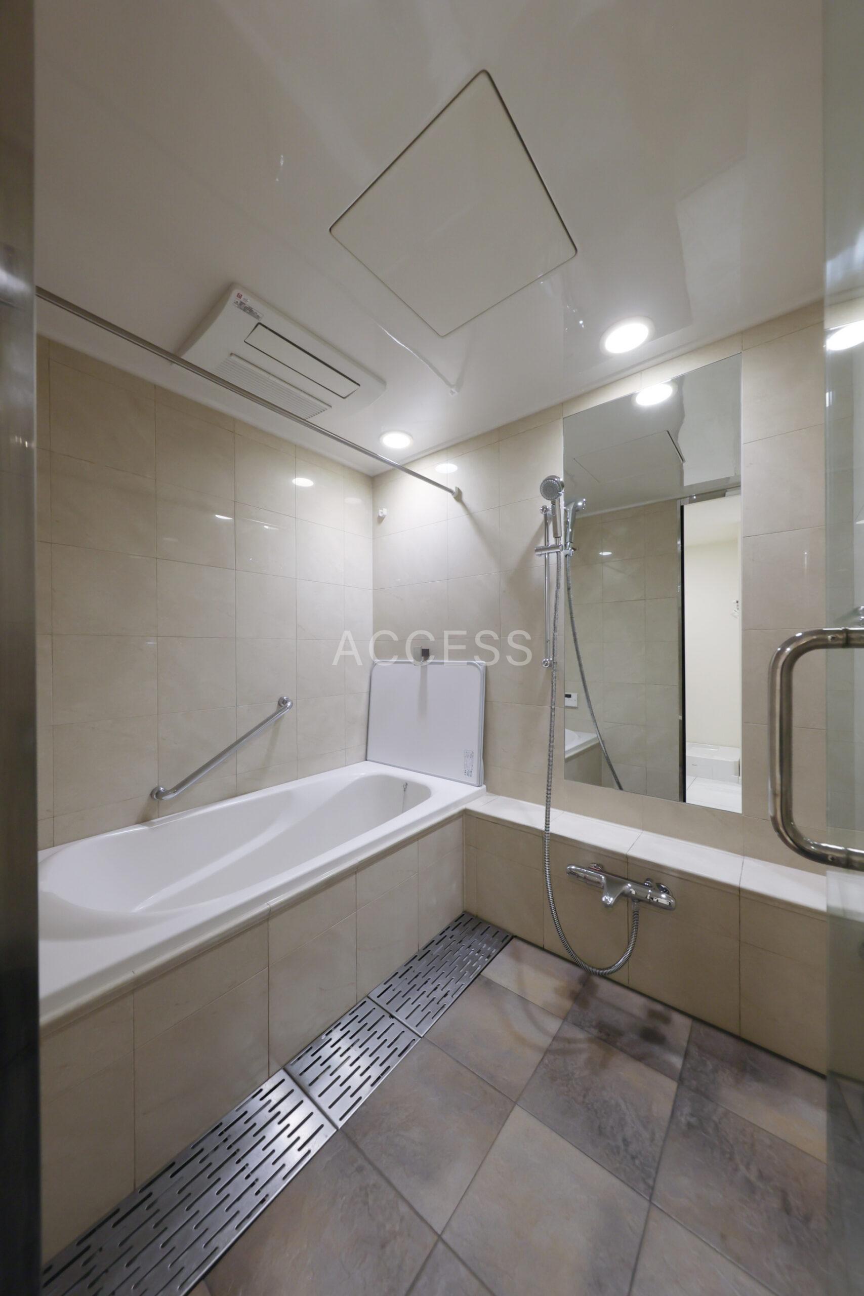 - インターホン(TVモニター付)、ダブルロック、オートロック、 、 フローリング、玄関ホール、じゅうたん張り、南面リビング、ダウンライト、 ベランダ、南面バルコニー、 クローゼット(1ヵ所)、ウォークインクローゼット(1ヵ所)、収納スペース、シューズウォークインクローゼット、玄関収納、トランクルーム、リネン庫、収納たっぷり、 バストイレ(別室)、洗濯置き場(室内)、シャワー、追焚、浴室乾燥機、脱衣所、給湯、ウォシュレット、タンクレストイレ、洗面所にドア、洗面台、洗面所独立、三面鏡付き洗面化粧台、独立洗面台、トイレ手洗いカウンター付、 コンロ設置済(3口)、コンロ種類(都市ガス)、グリル、ガスオーブンレンジ、食器洗乾燥機、電子レンジ付、システムキッチン、独立キッチン、 エアコン(全室)、床暖房、24H換気システム、ビルトインエアコン、 BS、CS、CATV(有料)、 光ファイバー、インターネット使用料無料 日当り良好