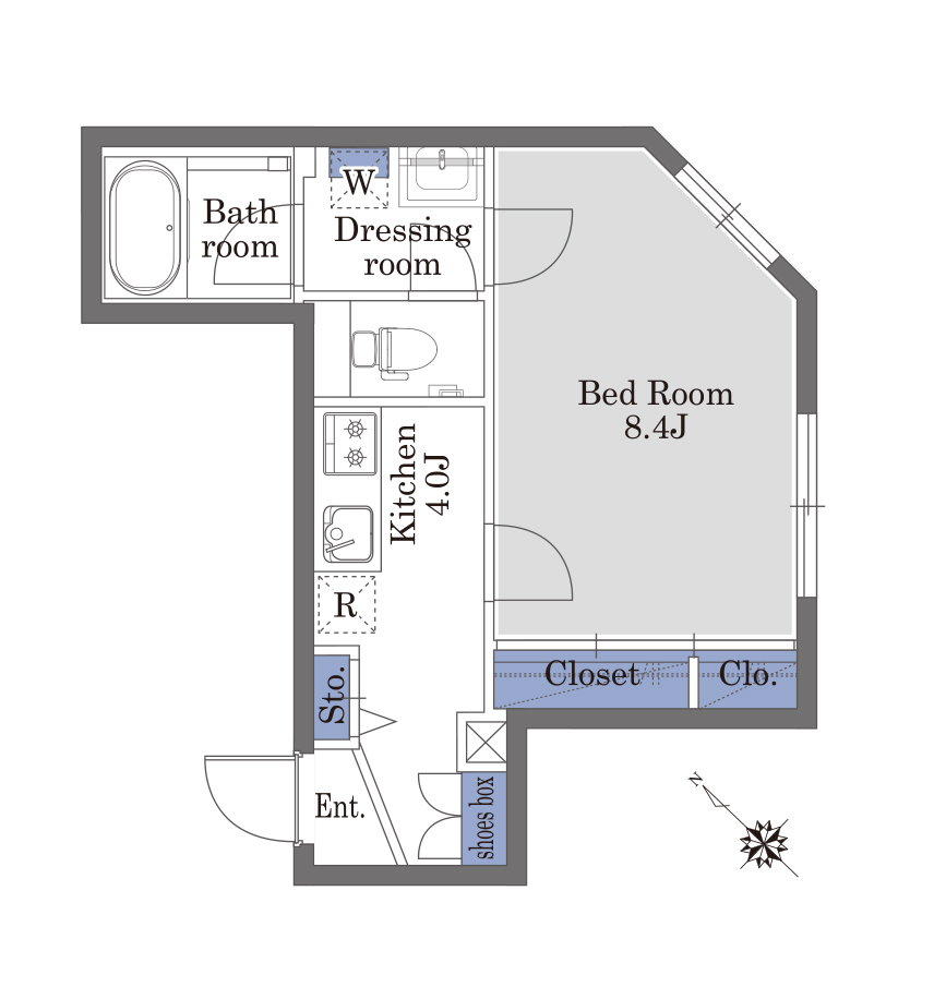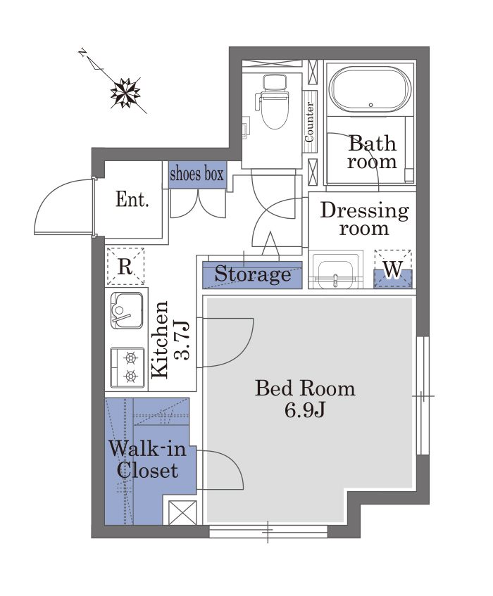 ガスコンロ設置のキッチンや浴室乾燥機付のバスルームなどひとり暮らしのための設備が整ったお部屋です。